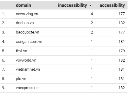For the two websites of Viet Nam Thoi Bao (Viet Nam Times) and Ba Sam, the number of accesses to the above two pages of VNPT and Viettel networks is less than FPT Telecom network, although the number of tests is more than FPT.