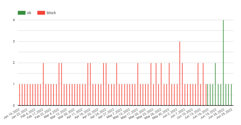 Figure 3: Doan Trang page blocked over half of 2022.