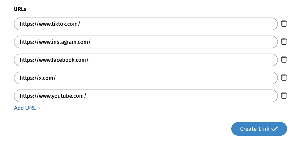 Note: You can copy and paste your list of URLs into the first URL slot, and each URL will populate each URL row (if copied based on the above text editor formatting).