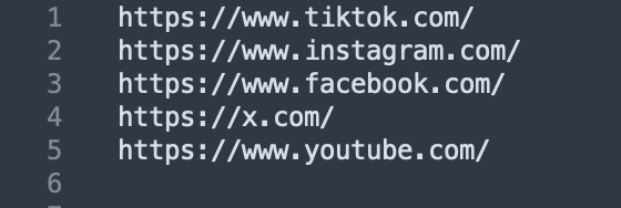 We recommend creating a list of websites in a text editor, where each URL is in a separate line. You do not need to separate URLs by commas or in any other way. Please see an example below.